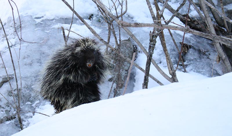 Ice climbing behind Calabogie and I ran into this fuzzy critter. He was pretty cool, let me take his picture.