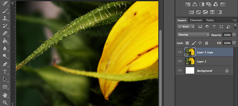 The Overlay layer adjustment adds a lot to the picture but it adjusts too much of the original colours and shades. We will add the detail first, and then we can experiment with colour correction after.