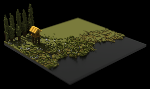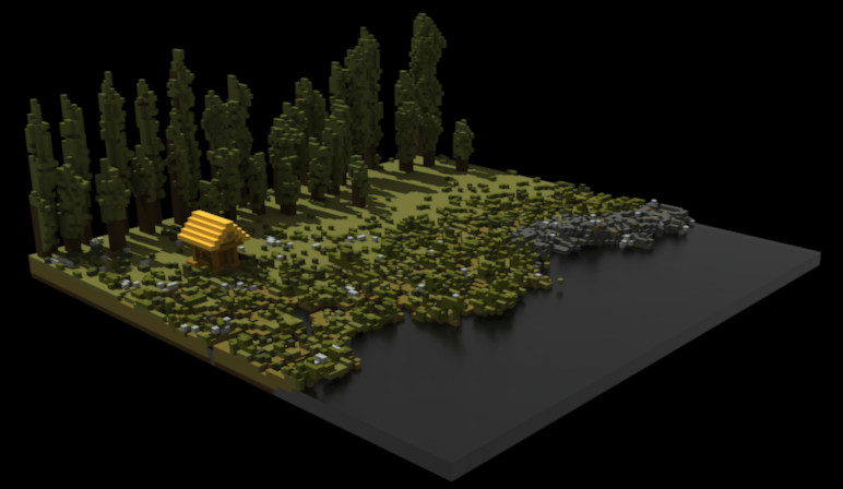 Voxel Alpine River Settlement